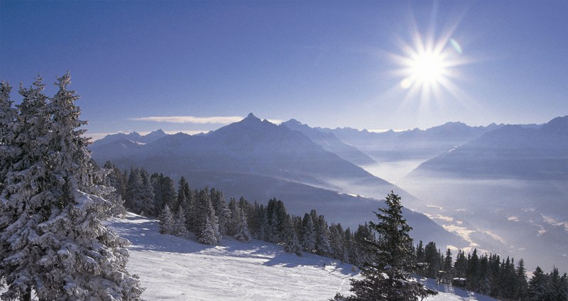 Am Patscherkofel offenbart sich ein atemberaubendes Panorama über Innsbruck mit Blick vom Wipptal über das Stubaital und Inntal sowie auf die gegenüberliegende Nordkette.